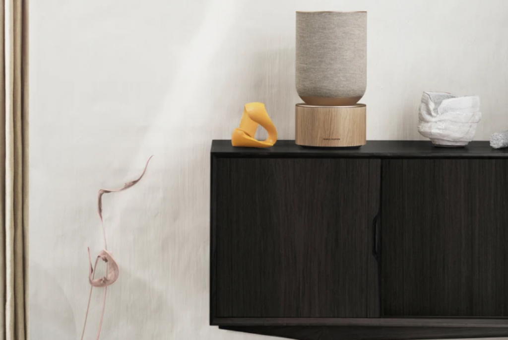 Designed to be positioned up against the wall on a shelf or side table, Beosound Balance delivers carefully controlled beams of sound for a clear acoustic experience from the front and rich sound enhancement at the back. The result is an impressively big acoustic experience compared to its size.